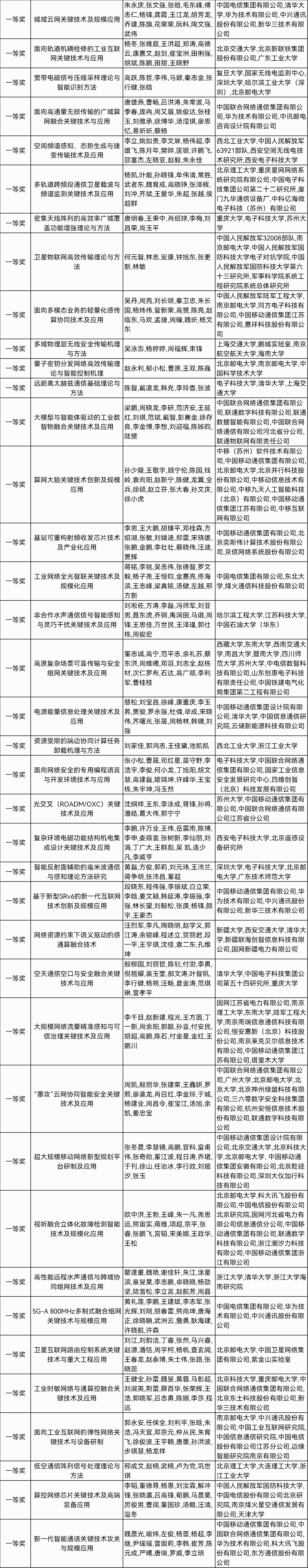 同时,中国移动牵头或参与了一等奖10项、中国联通7项、中国电信6项、华为5项、中兴通讯4项、新华三3项。