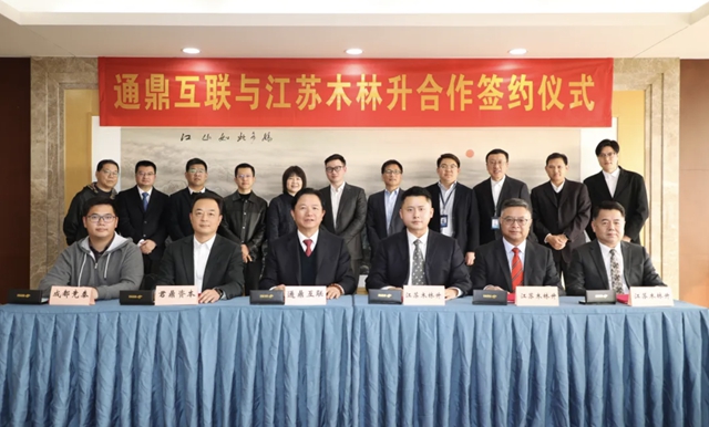2025年12月1日下午,通鼎互联信息股份有限公司和江苏木林升高新材料有限公司合作签约仪式在通鼎总部办公楼举行。江苏木林升执行董事、总经理周安邦,君鼎资本合伙人沈波,成都竞泰投资发展有限公司总经理王沛之等合作伙伴代表,中国慈善联合会副会长、中国企业改革与发展研究会副会长、通鼎集团有限公司董事长、通鼎互联信息股份有限公司董事长沈小平,通鼎集团总经理钱慧芳,通鼎互联总经理白晓明及相关高层,齐聚一堂,共商合作,共谋发展。