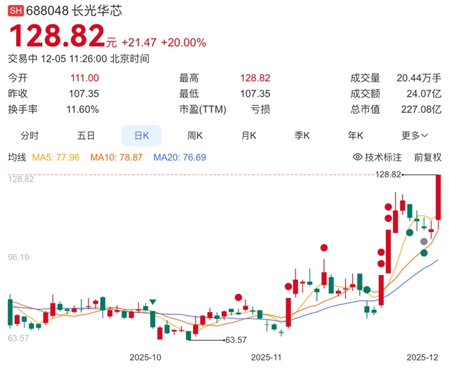 C114讯 12月5日消息(云青)今日,资本市场“CPO概念”再度发力。今年新晋“CPO概念股”苏州长光华芯光电技术股份有限公司,股价在10个交易日内第三度20cm涨停,创下历史新高。