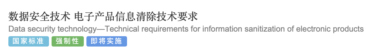 据了解,国家标准《数据安全技术 电子产品信息清除技术要求》由252(中央网络安全信息化委员会办公室)归口,委托TC260(全国网络安全标准化技术委员会)执行。
