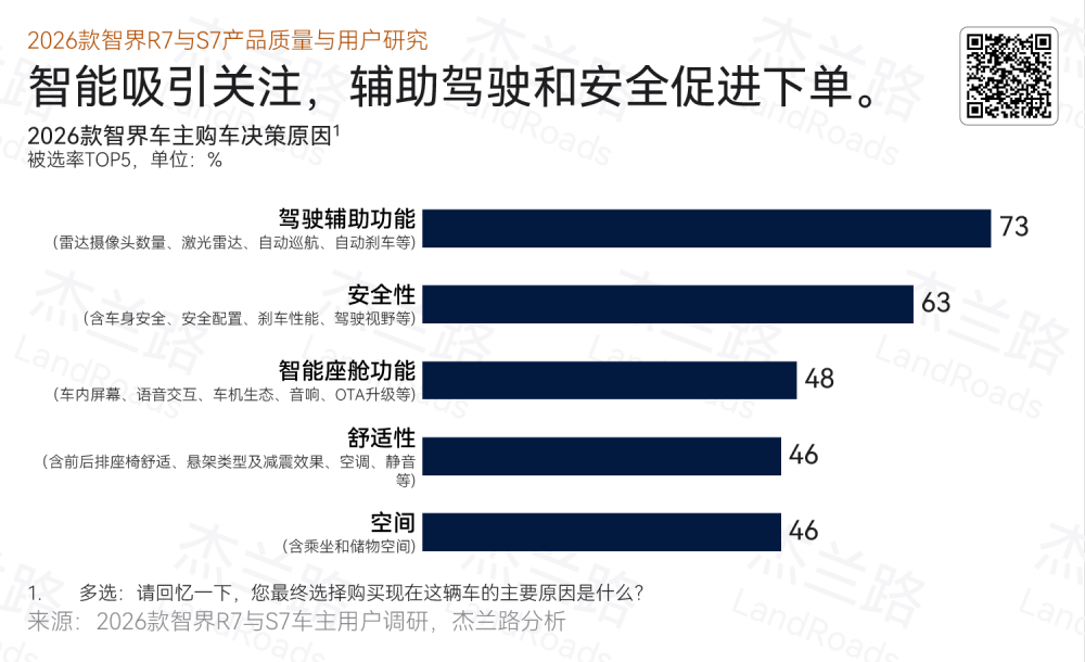 在此背景下,杰兰路针对新款智界R7与S7的共200位车主开展了专项调研,围绕用户画像、用车体验、产品质量感知等进行了重点分析。调研结果显示,在品牌势能与市场销量同步攀升的过程中,新款智界在质量口碑层面亦呈现出一定程度的优化趋势,反映出用户对智界质量表现的正向感知正在逐步强化。