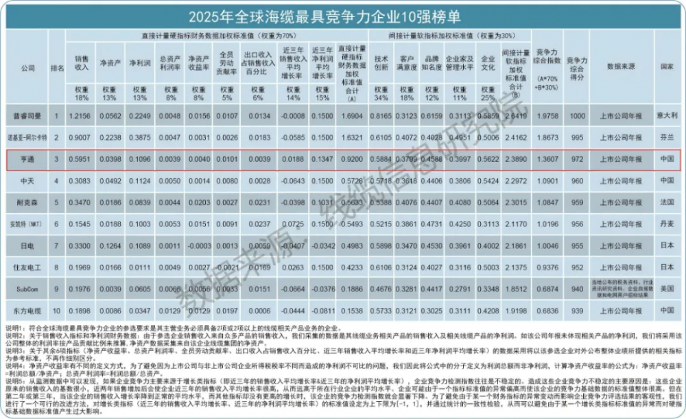 C114讯 12月19日消息(南山)今日,《2025年全球线缆最具竞争力企业10强榜单》和《2025年全球海缆最具竞争力企业10强榜单》联袂发布。