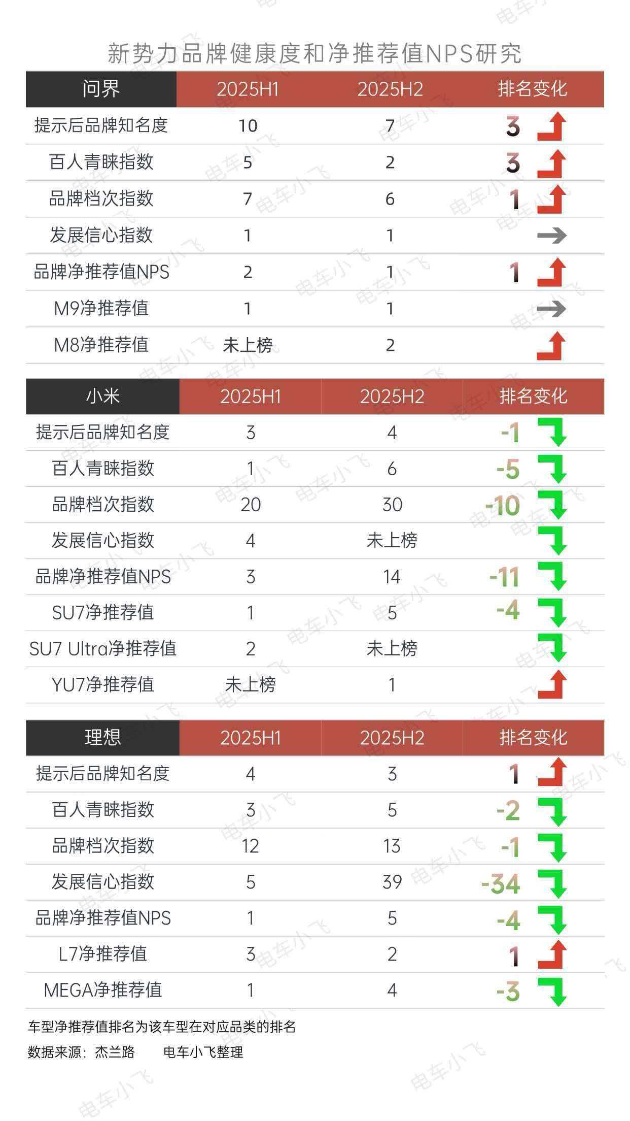 C114讯 1月6日下午消息(蒋均牧)问界荣获杰兰路2025下半年品牌净推荐值(NPS)、品牌发展信心指数、30万元以上品牌百人青睐指数三项第一。问界M9、M8双旗舰王牌包揽车型NPS总榜第一和第二,中国第一豪华汽车品牌口碑实至名归,持续引领智能电动高端车市场。