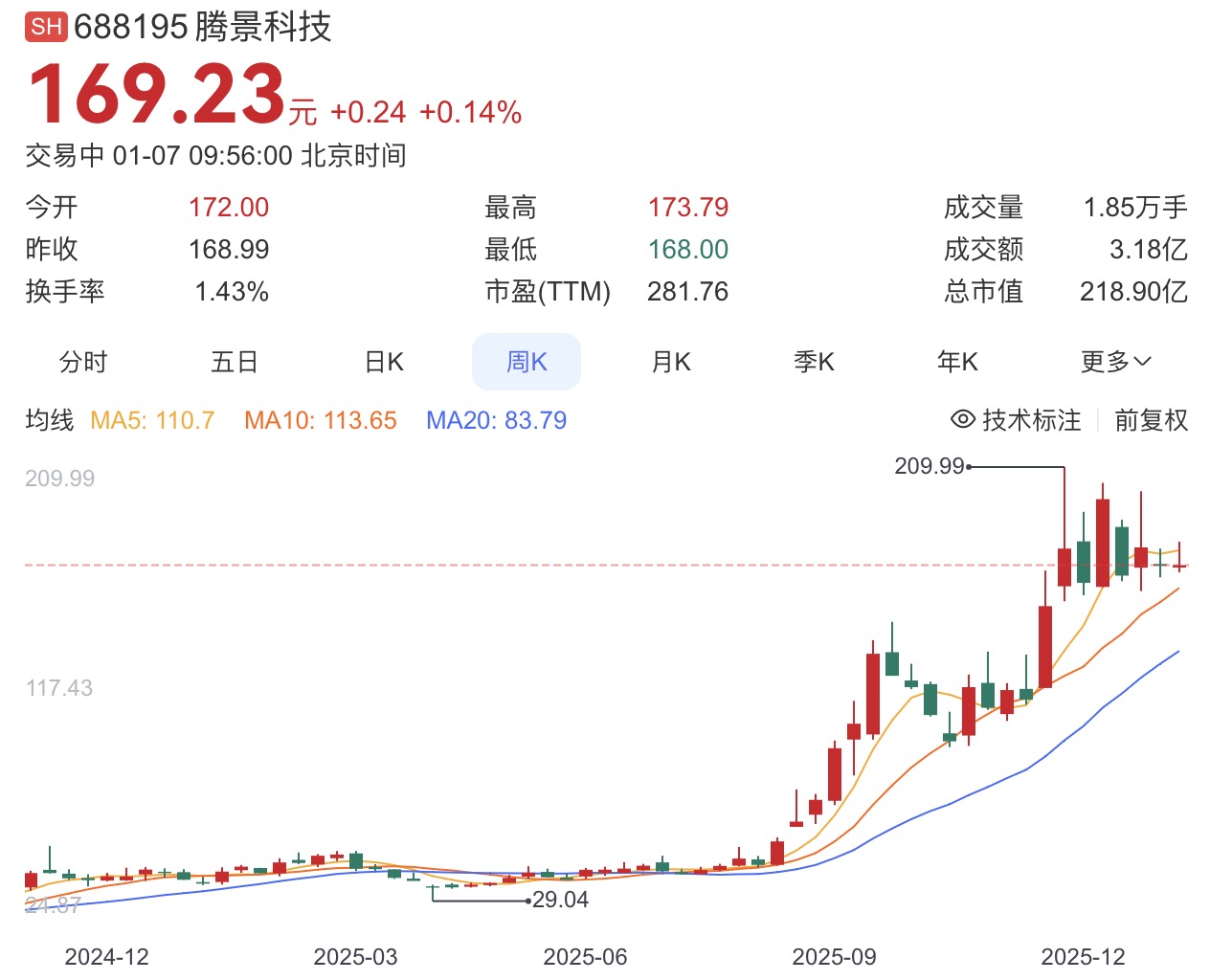 腾景科技是“光模块概念股”,过去一年受到资本市场的热烈追捧,股价涨幅超过3倍。