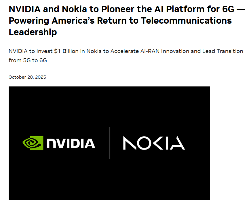 在这笔交易中,英伟达以10亿美元投资获得诺基亚2.9%的股份,成为其“最大股东之一”。诺基亚表示,该投资将助力其5G与6G RAN技术研发,包括围绕英伟达ARC-Pro平台打造AI-RAN解决方案,并拓展诺基亚5G/6G RAN在英伟达CUDA套件上的应用能力。
