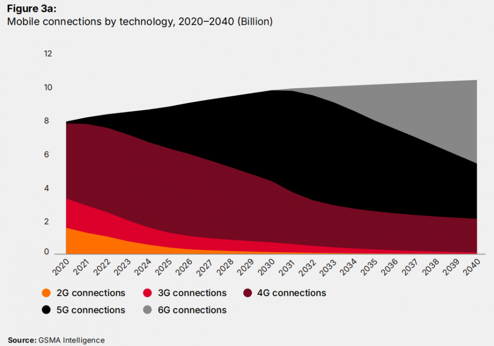 根据GSMA预测,6G预计从2030年开始部署,初期将在中国、日本、韩国、美国、欧洲、海湾合作委员会(GCC)国家等地区率先商用。到2040年,全球6G连接数预计将超过50亿,占全球总移动连接数的约54%,成为主流移动通信技术。