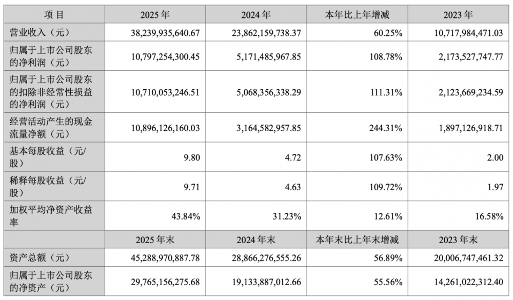 C114讯 3月31日消息(水易)中际旭创公布的2025年度业绩显示,报告期内,公司实现营业收入382.40亿元,同比增长60.25%;归属于上市公司股东的净利润107.97亿元,同比增长108.78%;扣非净利润107.10亿元,同比增长111.31%。