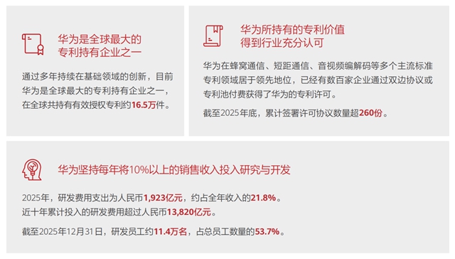 华为2025年研发支出1923亿元再创新高,近十年累计投入超13820亿元
