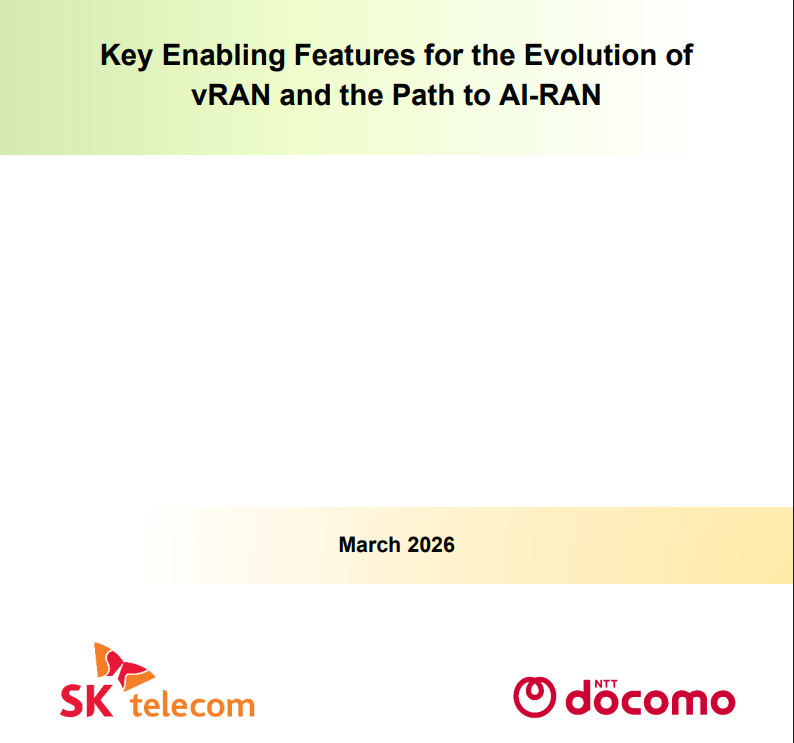 C114讯 4月7日消息(岳明)来自Light Reading的报道显示,日本最大电信运营商NTT Docomo与韩国最大电信运营商SK电讯(SKT Telecom,以下简称SKT)近日联合发布了一份关于AI-RAN演进路径的技术白皮书。