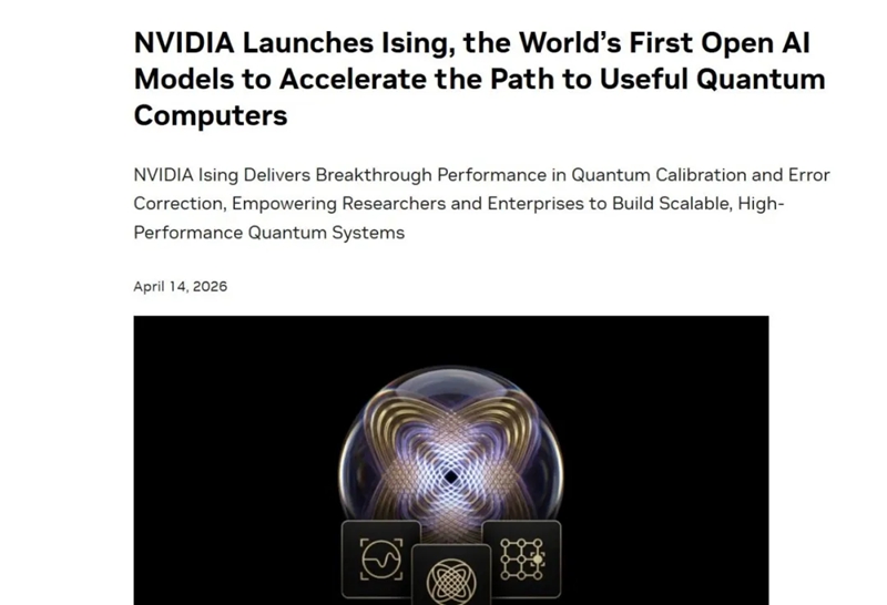C114讯 4月15日消息(云青)当地时间周二,英伟达在GTC 2026大会上,正式发布全球首个面向量子计算的开源AI模型家族——NVIDIA Ising(伊辛)。