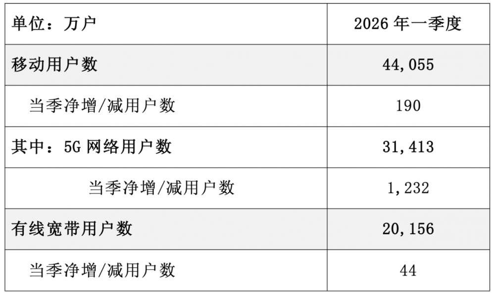 有线宽带用户数方面,当季净增44万户,有线宽带用户数累计2.0156亿户。根据中国电信公布的2026年第一季度业绩报告,中国电信千兆宽带用户渗透率约34%。