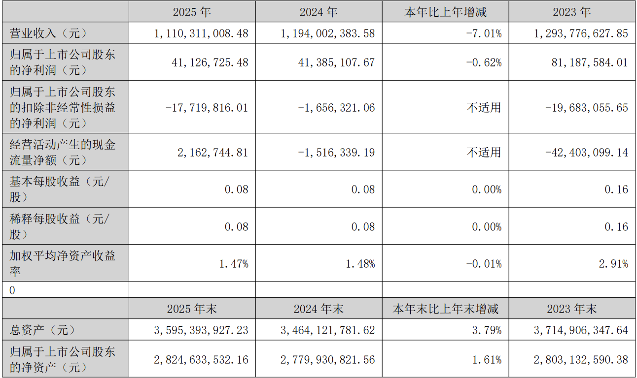 C114讯 4月28日消息(颜翊)昨日,通宇通讯公布了2025年度报告。2025年,公司实现营业收入约11.10亿元,同比下降约7.01%;实现归属于上市公司股东的净利润约4112.67万元,同比下降约0.62%。若剔除实施2025年股票期权与限制性股票激励计划产生的股份支付费用影响金额1019.98万元,公司2025年实现的净利润同比增长。
