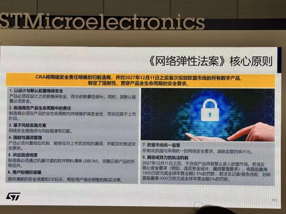 何荻凡谈到,通过这一系列举措,意法半导体不仅将确保自身产品符合CRA要求,更重要的是,将其数十年的安全经验转化为客户可直接利用的工具,帮助他们顺利跨越合规门槛,赢得欧洲市场。