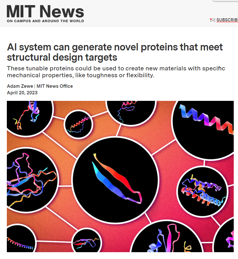为了解决这个问题,麻省理工学院(MIT)的研究人员利用人工智能技术,开发了一种能够生成超越自然界的新型蛋白质的方法。他们创建了一种基于机器学习的算法,可以根据预设的结构目标,预测出能够形成相应蛋白质的氨基酸序列。这些序列既有一定的与已知蛋白质相似的程度,又有一定的创新性和独特性。这些蛋白质可用于制造具有特定机械性能(如刚度或弹性)的材料,从而取代作为原料的石油或陶瓷,会大大减少碳足迹。
