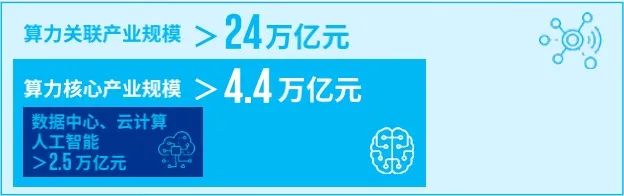 而中国算力核心产业规模2021年就已超1.5万亿元,关联产业规模超8万亿元。经初步测算,到2025年,中国数据中心、云计算、人工智能市场规模总计将突破2.5万亿元,算力核心产业规模将不低于4.4万亿元,成为与新能源汽车比肩的超万亿级高潜赛道,若将视野扩大至算力关联产业,规模可达24万亿元。