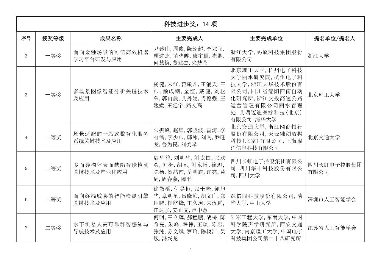 经吴文俊人工智能科学技术奖励委员会审核通过,报中国人工智能学会理事长批准,决定授予70项成果为2023年度“吴文俊人工智能科学技术奖”,现将结果予以公告。
