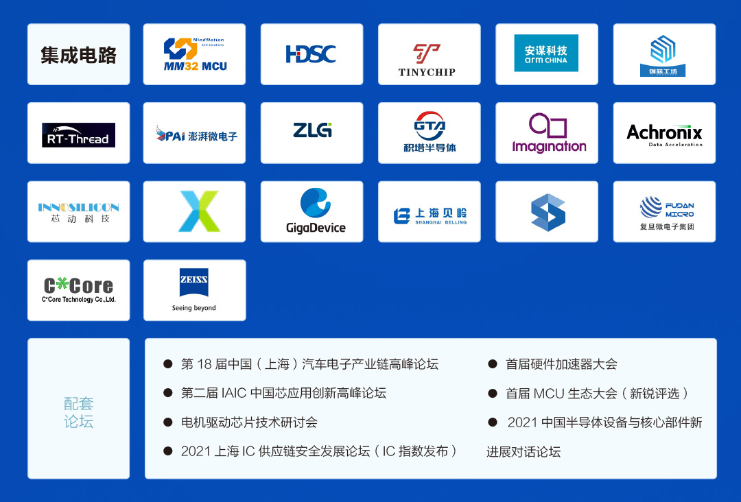 第98届中国电子展今年特设了集成电路主题板块,以芯片设计为主方向,涉及MCU、FPGA、GPU、汽车半导体、电机驱动芯片、供应链等技术。同时,今年同期还将召开汽车电子产业链高峰论坛、IAIC中国芯应用创新高峰论坛、首届硬件加速器大会、IC供应链安全发展论坛、电机驱动芯片技术研讨会、首届MCU生态大会等七场集成电路领域的技术论坛。灵动微电子、华大半导体、泰矽微电子、安谋科技、创芯工坊、RT-Thread、澎湃微电子、立功科技、积塔半导体、Imagination Technologies、Achronix Semiconductor、芯动科技、XMOS、兆易创新、上海贝岭、复旦微电子、紫光展锐、凯思半导体、美丽微半导体、应能微电子、卡尔蔡司、天津鲲鹏和苏州国芯等国内外行业巨头将参展参会,全方位展示集成电路设计的最新方案和产品技术。