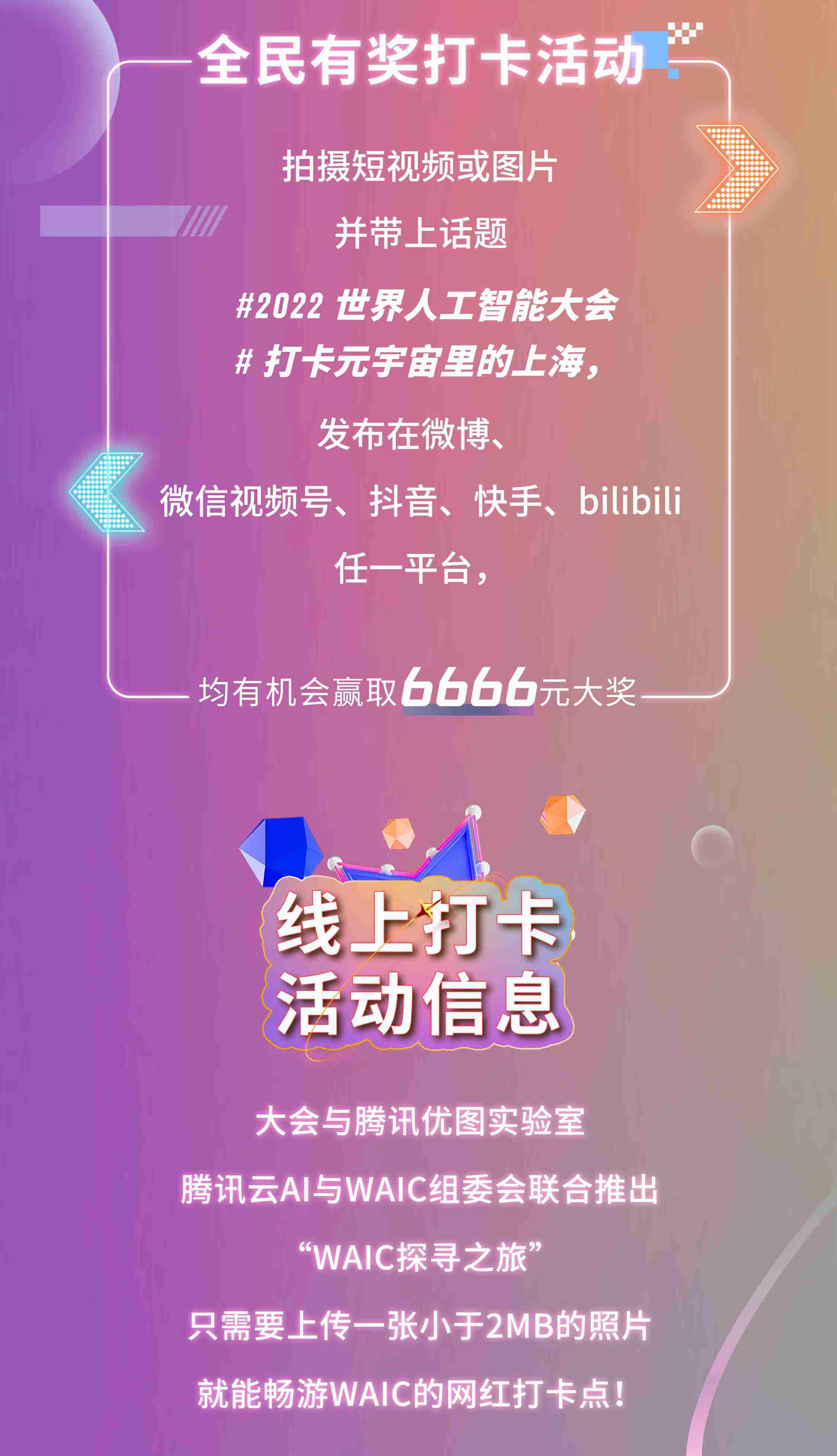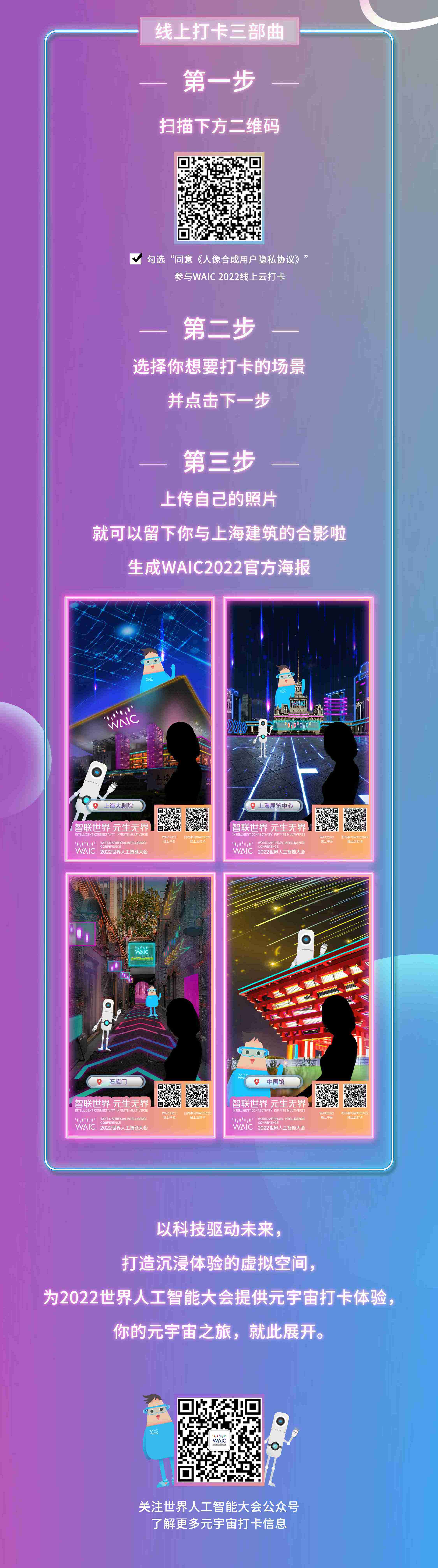 以科技驱动未来,打造沉浸体验的虚拟空间,为2022世界人工智能大会提供元宇宙线下打卡体验,你的元宇宙之旅,就此展开。