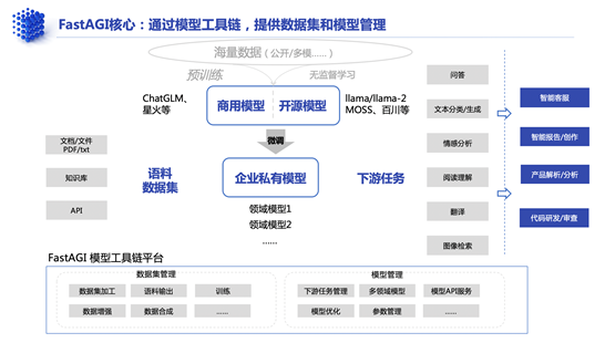 模型工具链平台FastAGI基于企业已有的业务和数据基础设施,利用大模型相关的工具链快速构建业务数据智能能力,降低大模型在企业应用的门槛。