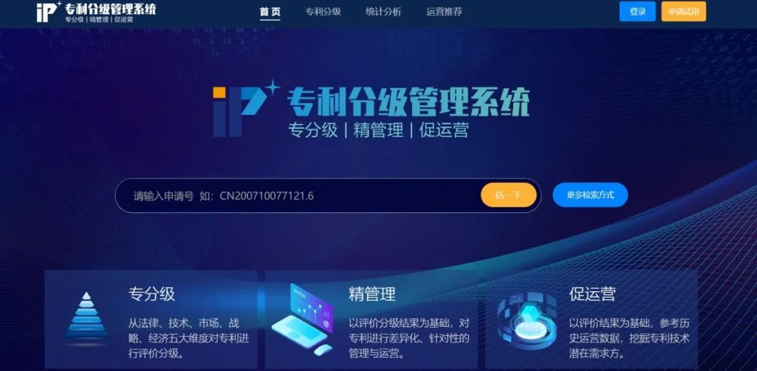 IP7+专利分级管理系统以“专分级、精管理、促运营”为三大核心功能模块,以大数据为基础、借信息化工具之手,充分利用公司全生命周期专利大数据资源,以“三步法、五维度”的分级策略、四十余项指标的评价模型,对专利资产进行分级分类管理,挖掘高价值专利并进行运营匹配分析,精确推介潜在需求方。重点客户包括多所国内“985”高校、银行等。