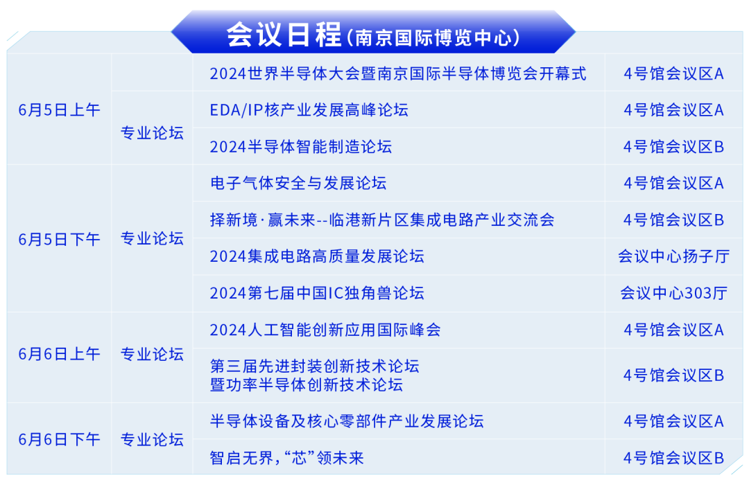 6月5-7日,2024世界半导体大会暨南京国际半导体博览会将在南京国际博览中心举办。