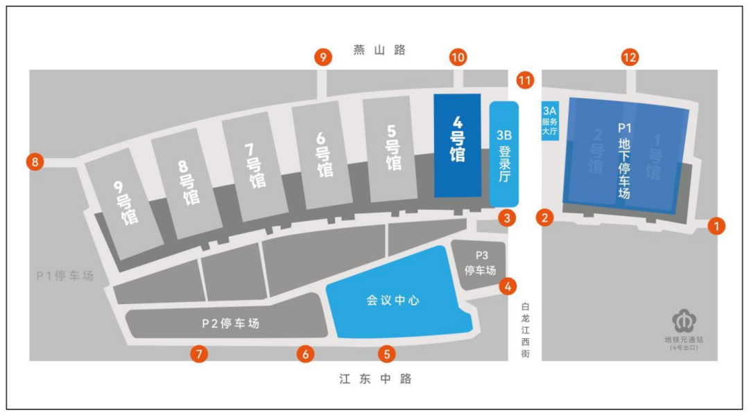 导航至南京国际博览中心4号门或11号门,步行至3B 登录厅入场。