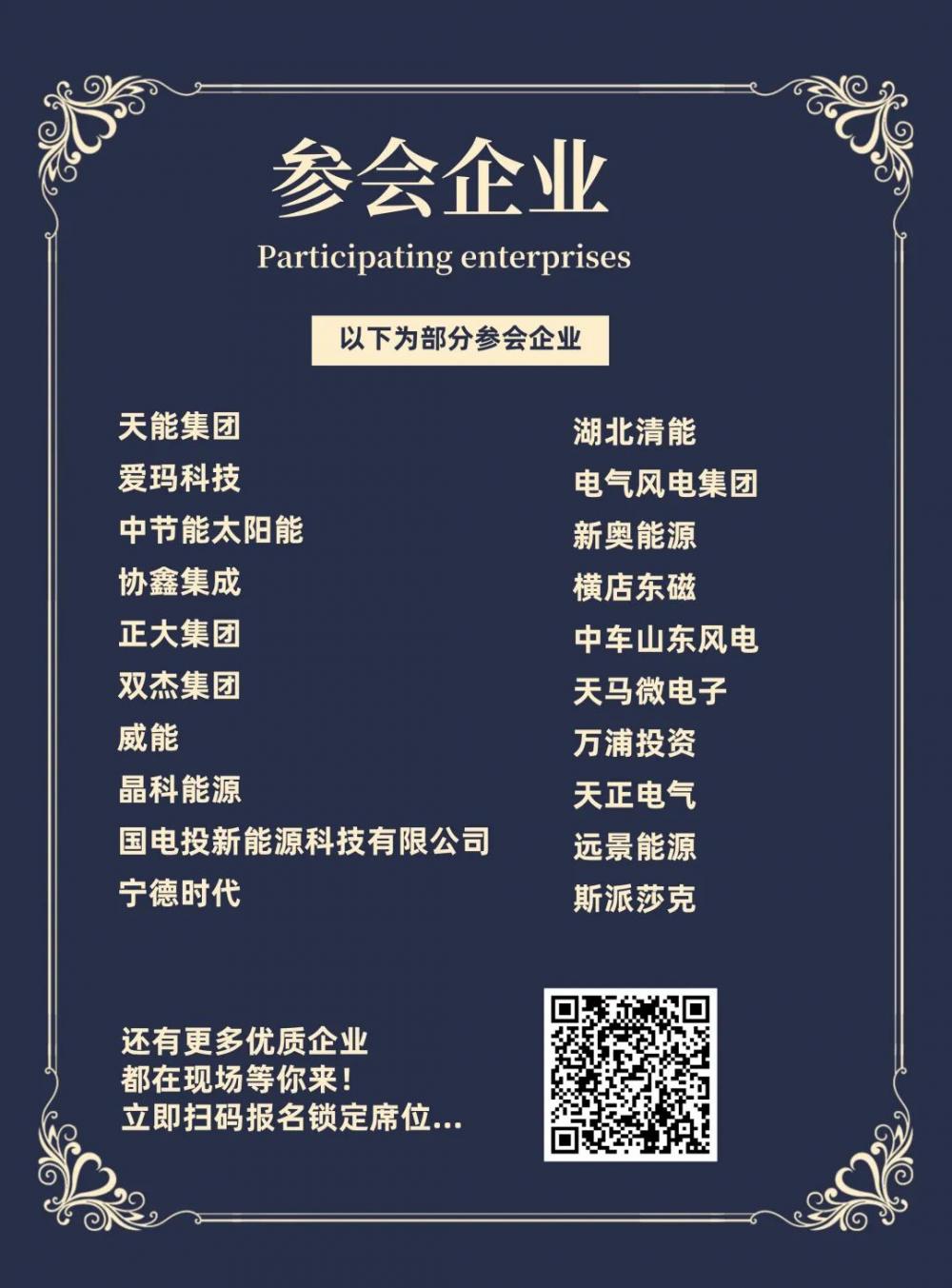 天能集团、爱玛科技、正大集团、威能、晶科能源、宁德时代、电气风电集团、横店东磁、天马微电子、万浦投资、天正电气、远景能源、斯派莎克等企业均已确认参会,更多企业持续更新中...