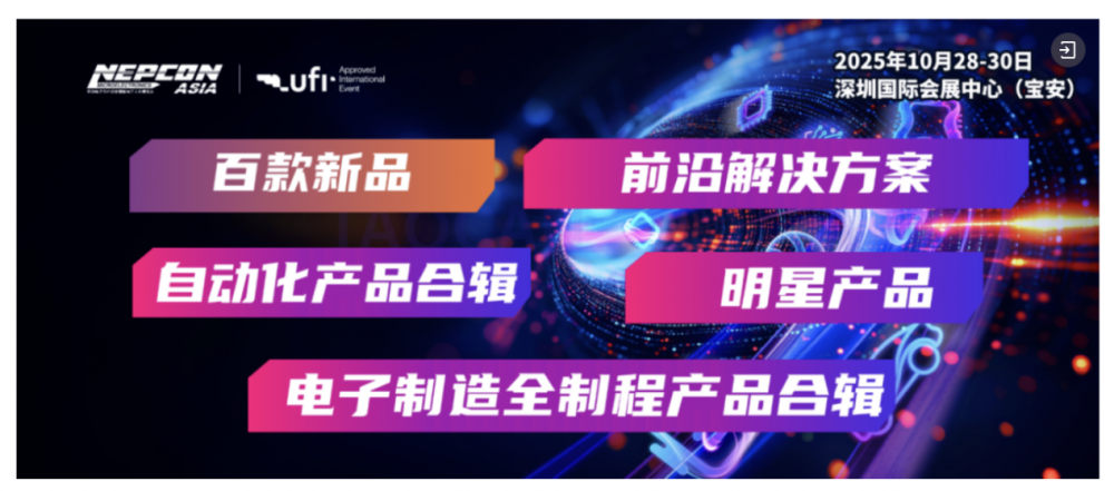 作为电子制造专业展会,NEPCON ASIA亚洲电子展将于2025年10月28-30日在深圳国际会展中心(宝安)盛大举办。