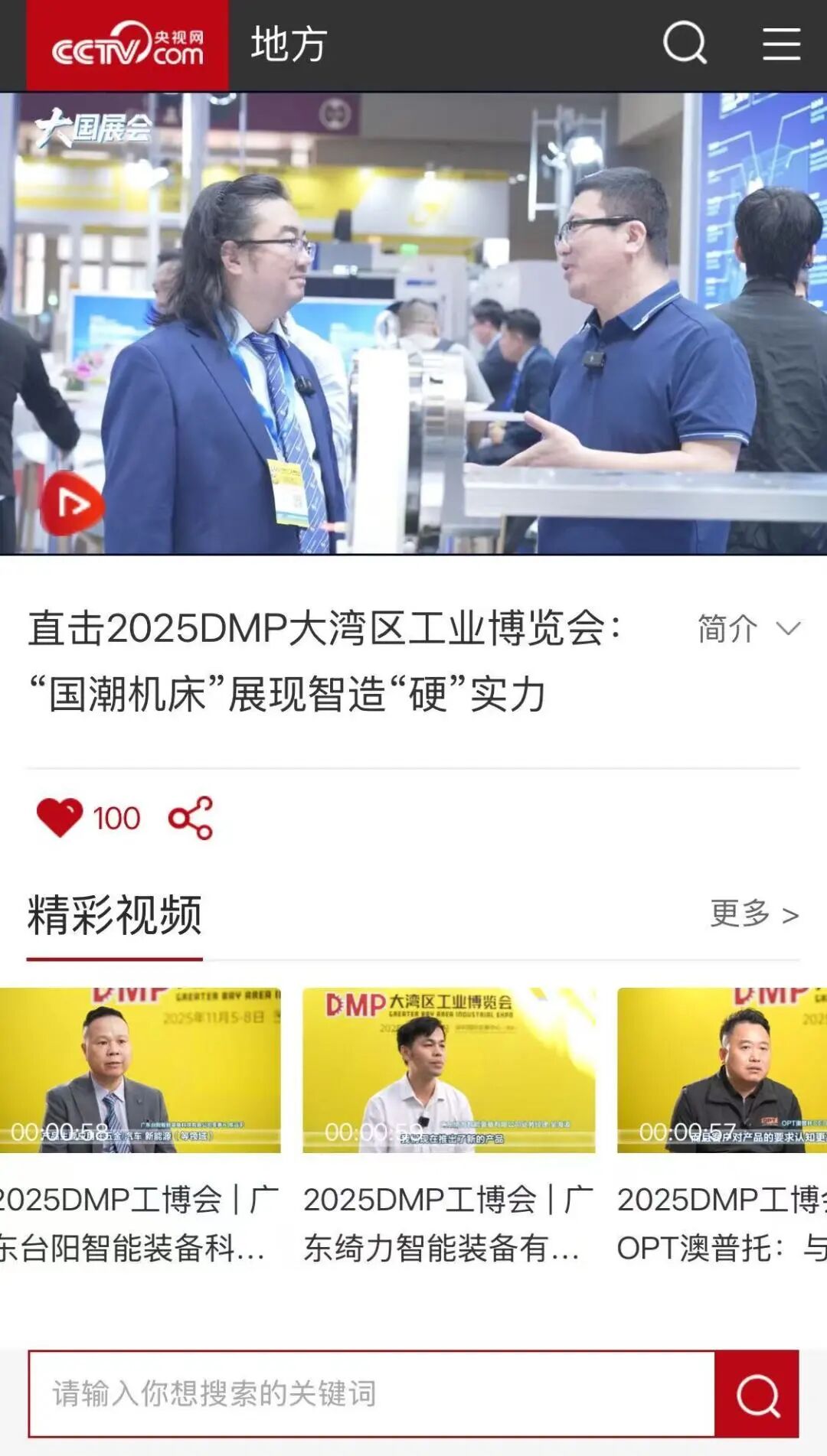 “以技术和创新为主导,集技术交流、供需对接、成果转化于一体,已经成为大湾区乃至全国先进制造业技术创新的重要风向标,这就是DMP工博会”——央视网 记者 徐静