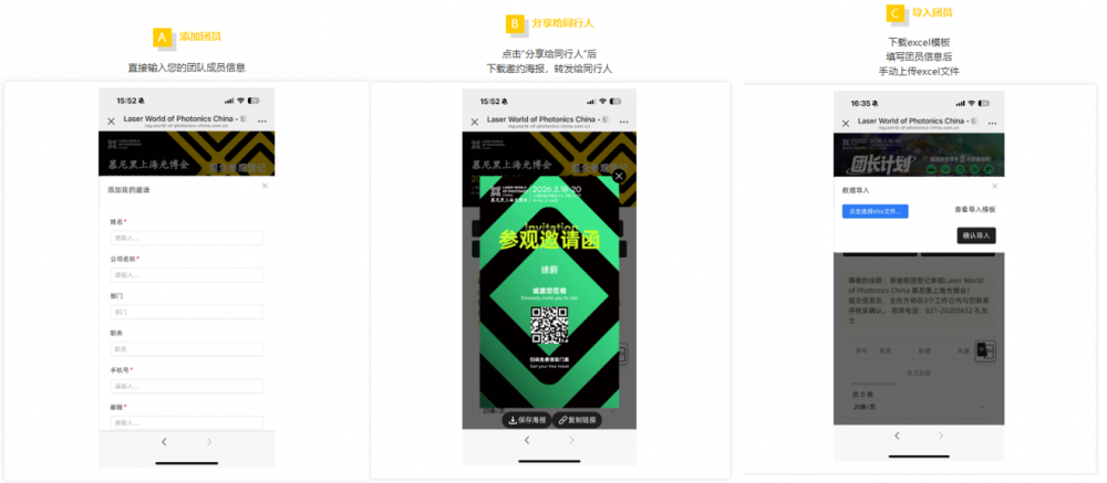 多种邀约方式(添加团员/分享给同行人/批量导入)专属权益全解锁