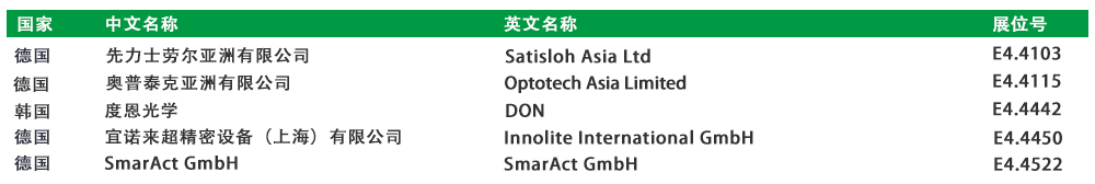 仅罗列部分,更多展商及展品请至慕尼黑上海光博会在线会刊