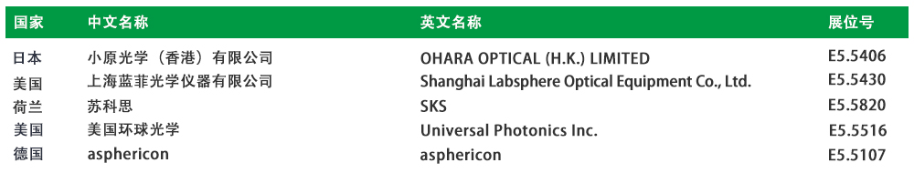 更有诸多国际新面孔惊喜加盟,如:LITILIT、瑞士雷莫、中央精机株式会社、科耐激光、新加坡捷迪激光、few-cycle Inc.、Innolume GmbH、Liquid Instruments Pty Ltd. 、SMC自动化、TopCel、asphericon、香港超奈科技、OEM Tech、Fluence sp. z o. o.、Lightera LLC、SmarAct GmbH、LEJ - Leistungselektronik JENA GmbH、Evatec AG等等,为这场光学盛会注入全新活力。