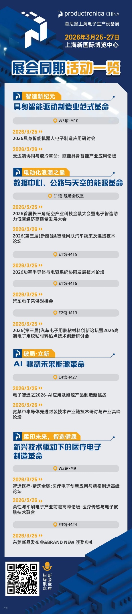 今年慕尼黑上海电子生产设备展,将紧扣行业前沿动态,特别策划推出12场同期活动,聚焦四大核心主题展开深度探讨: