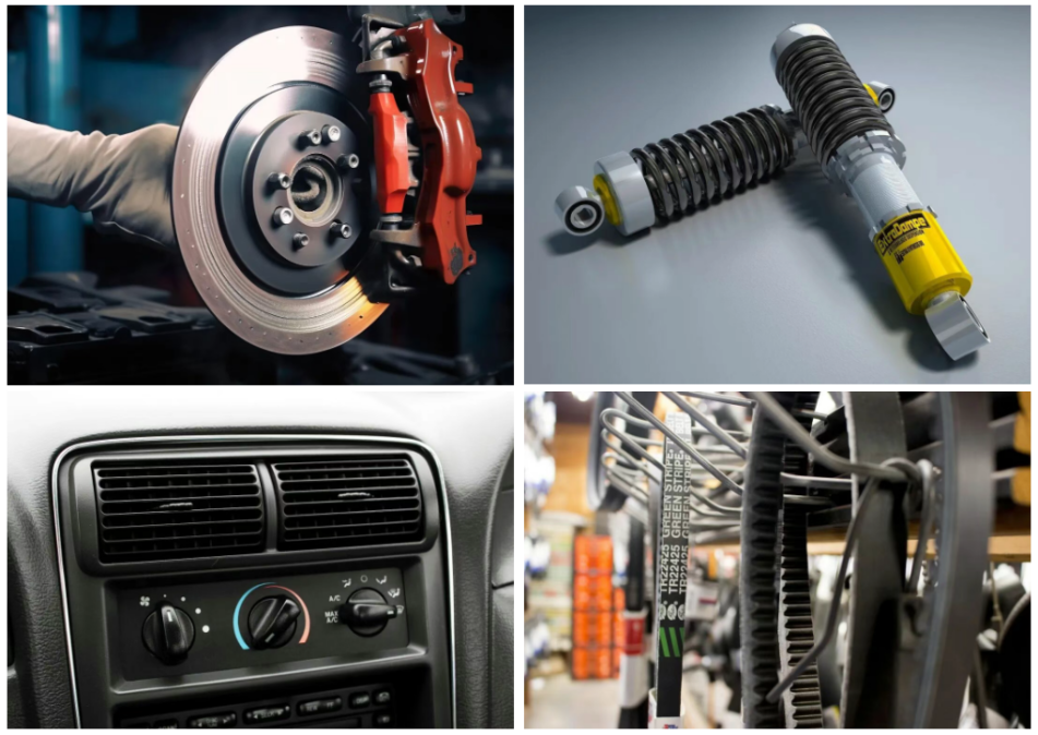 底盘系统、制动系统、新能源三电系统、发动机&变速箱系统、车身外覆盖件、车身内饰件、标准件、售后维修件、空调系统、再制造零部件等。