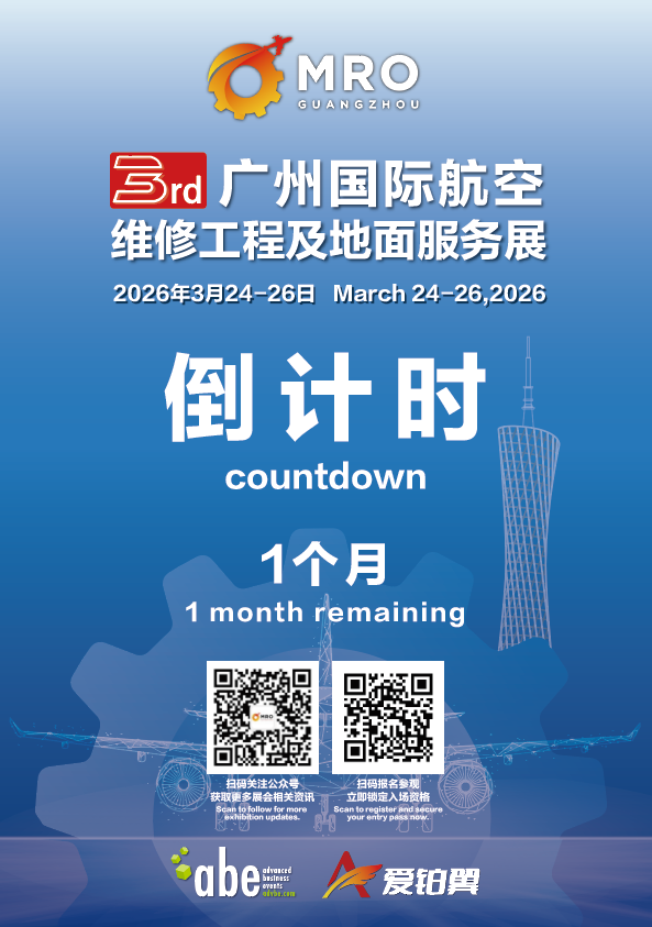 距离第三届广州国际航空维修工程及地面服务展(广州MRO展)开幕仅剩1个月!同时,早鸟优惠报名通道将于2026年2月28日正式关闭,仅剩5天!错过这5天,再等一年!赶紧锁定你的席位,与行业大咖面对面!