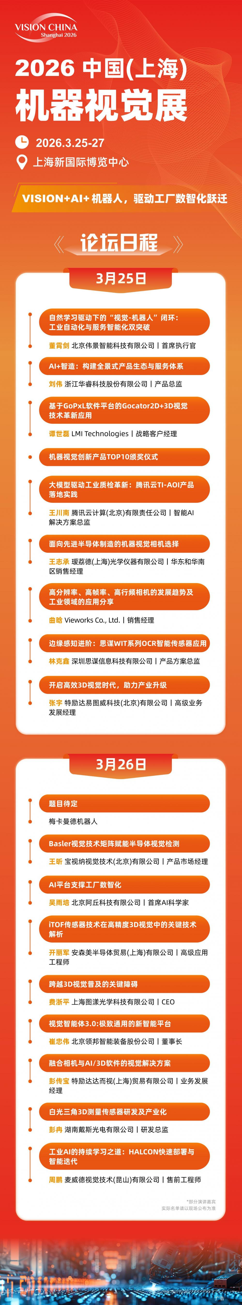 Vision China 2026(上海)机器视觉展,即将于3月25-27日在上海新国际博览中心W4&W5馆震撼启幕!