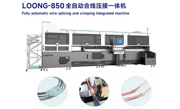 林全科技的Loong-850全自动合线压接一体机,核心合压功能:是“合压”工艺,能一次性可将两端最多16根线缆压接并合并。设备具备链式U型压接钉合压接或焊接选项,并集成了压力监控功能以确保压接质量稳定。除了核心压接,此类设备通常整合了送线、定长裁线、剥皮、自动穿热缩管、穿防水栓、线端扭线乃至线缆缠胶布等多种功能,实现高度自动化生产。