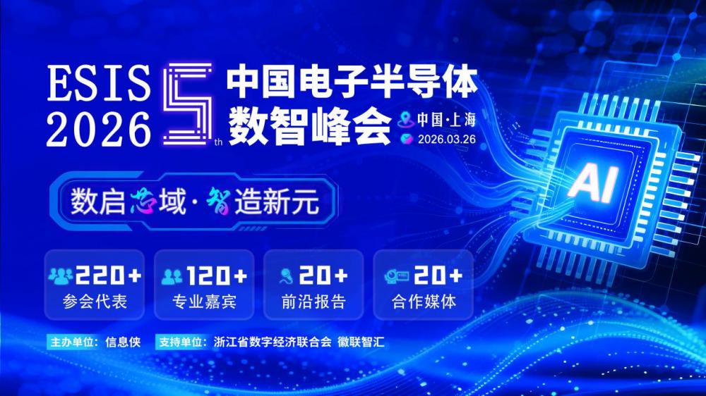 数智赋能芯产业,创新引领新征程。2026年3月26日,ESIS 2026第五届中国电子半导体数智峰会在上海扬子江丽笙精选酒店圆满举办。本届峰会以“数启芯域・智造新元”为主题,由信息侠主办,浙江省数字经济联合会、徽联智汇鼎力协办,汇聚电子半导体、智能制造、数字科技等领域精英翘楚,共探产业数智化转型新路径。