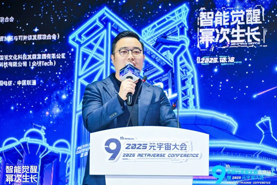 当红齐天集团董事长兼CEO、元宇宙大会执行主席齐笑在开场演讲中表示,公司以"用中国科技传播中华文化"为使命,通过五代大空间VR技术迭代,落地多项海内外标杆项目。未来将全力构建数实融合平台,推动中国元宇宙技术与文化沿"一带一路"走向世界。