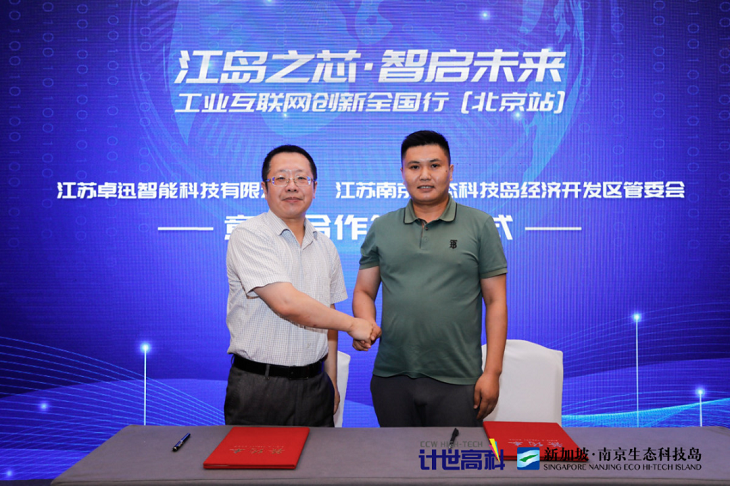 现场,普奥云洲智能科技(上海)有限公司、江苏卓迅智能科技有限公司分别和江苏南京生态科技岛经济开发区管委会进行签约。