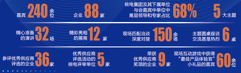 ◆ 第八届获得核电单位深度认可。中广核工程有限公司作为大会协办单位,福清核电,阳江核电,海南核电3家核电厂同时作为大会支持单位。
