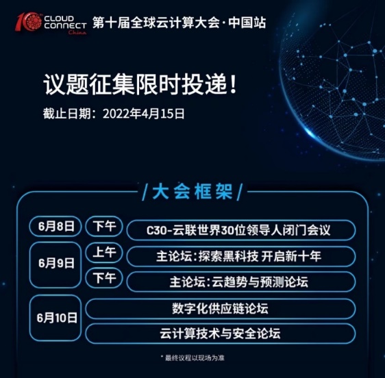 投递成功的演讲嘉宾不仅有机会在全球云计算大会·中国站这一国际化平台展示自己的最新成果,还将与全球专家学者、业内大咖一起进行学术交流,共同探讨行业热点话题,让更多业内人士认识您并听见您的“发声”;同时,还将享受大会全程VIP参会礼遇及大会的全媒体平台推广。可至大会官网了解更多内容:https://www.cloudconnectevent.cn/zh-cn/Call-for-Submission