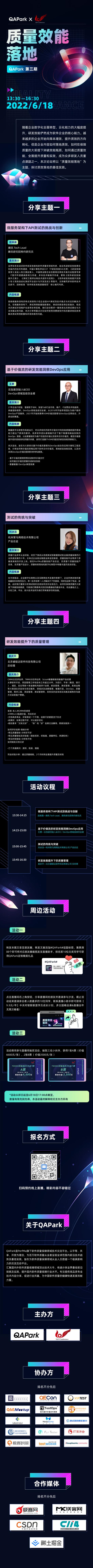 6月18日,QAPark第3期《质量效能落地》线上直播沙龙,将聚焦如何在保障质量的大前提下突破效能瓶颈?如何通过质量效能全面提升质量和实效?从这两大问题出发,多维度探讨质效落地最佳实践方法,让企业主真正做到降本增效,提升质效。