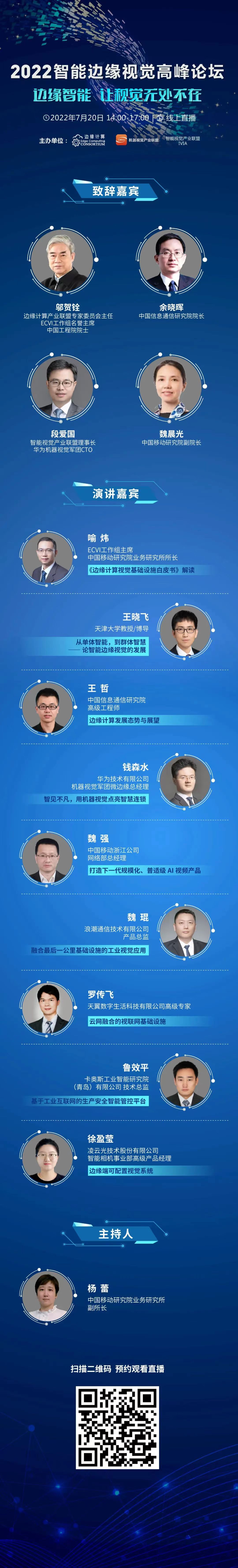 2022年7月20日,边缘计算产业联盟(ECC)联合机器视觉产业联盟(CMVU)、智能视觉产业联盟(IVIA)共同主办的“2022智能边缘视觉高峰论坛”将以线上直播形式召开,以“边缘智能,让视觉无处不在”为主题,深入探讨“边缘+视觉”的技术能力、应用场景、落地形态、未来发展。