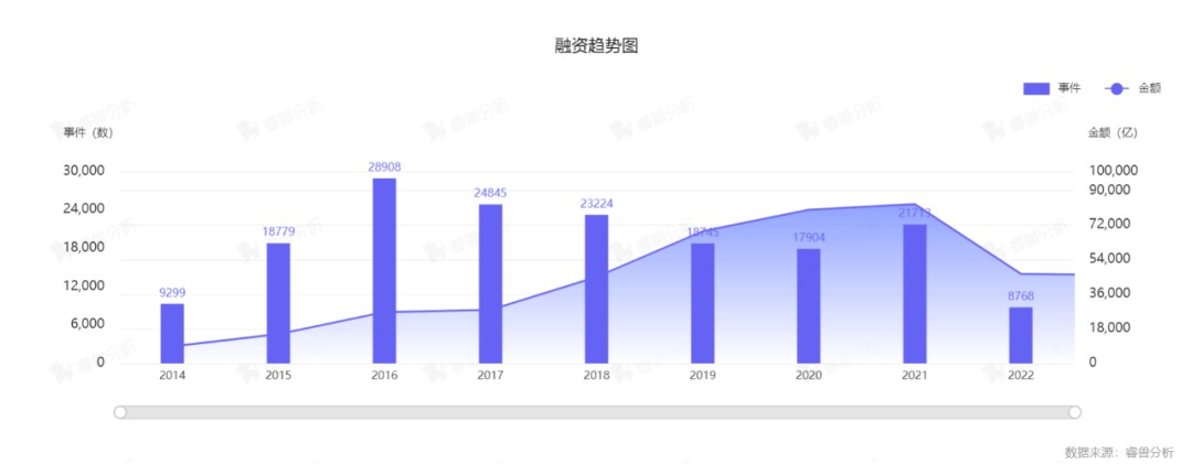 “太难了”可能是很多今年创业者的心声,股权投资行业自然也是“同此凉热”。募资难、投资节奏放缓、上市破发、马太效应等词常常见诸报端。从创业邦睿兽分析的数据来看,截至8月底,全行业披露的投融资事件数为8752起。如果把视野拉远则会发现,今年很有可能是自2014年“双创”时代以来投融资事件数最低的一年。