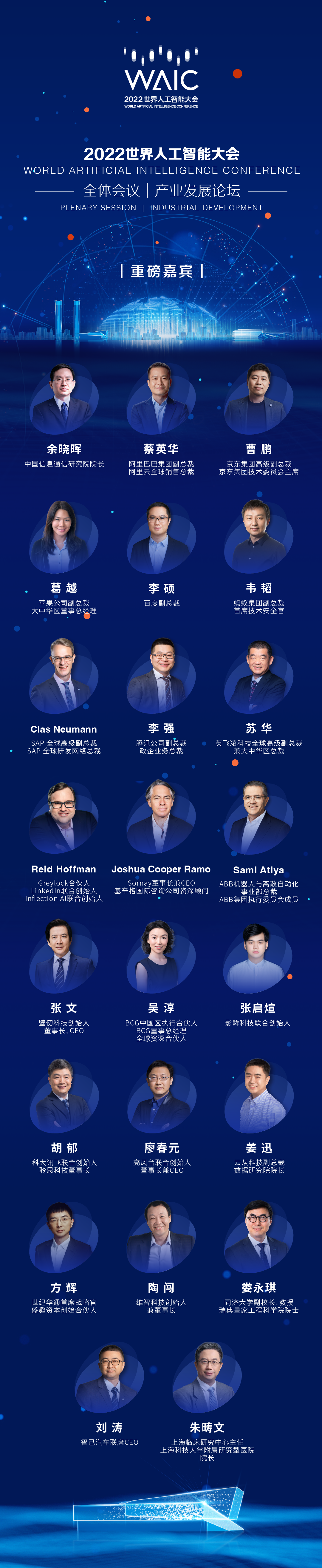 9月1日开幕当天,大会的重磅活动——由世界人工智能大会组委会、浦东新区人民政府主办,上海张江(集团)有限公司、中国信通院上海工创中心承办的2022世界人工智能大会全体会议-产业发展(以下简称“WAIC2022全体会议-产业发展”)将在张江科学会堂-主会场A举行。