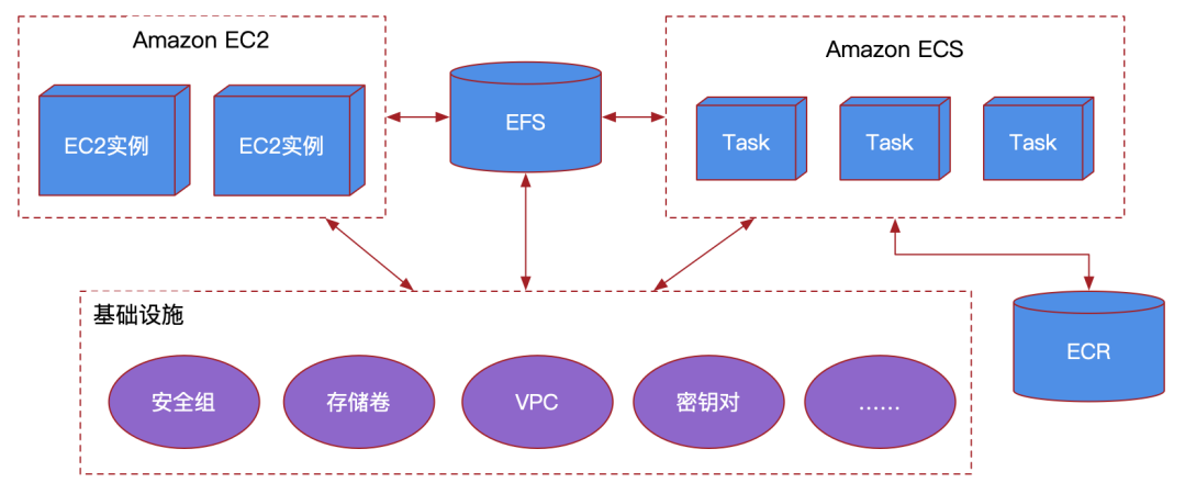 而Amazon的ECS、EFS 、EC2、ECR是什么关系呢?