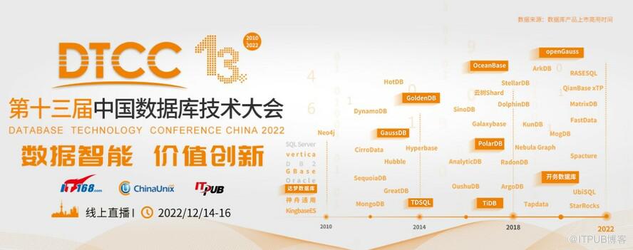 2022年12月14-16日,第13届中国数据库技术大会(DTCC 2022)将在线上隆重召开。本届大会设置了2大主会场,20+技术专场,超120+精选案例实践主题,重点围绕云原生数据库、分布式数据库、时序数据库、图数据技术、实时数仓技术与应用实践、金融业数据库应用实践等内容展开分享和探讨。