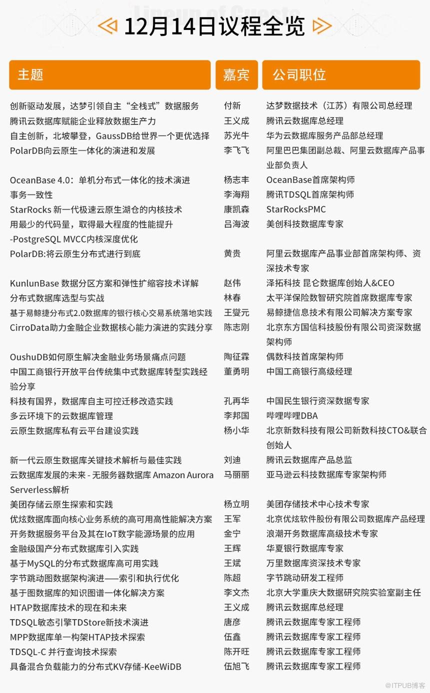 本次大会,有来自太平洋保险、工商银行、建设银行、民生银行、中国银联、渤海银行等金融企业的主题分享,有来自百度、京东、字节跳动、美团、同程旅行、小米、快手、小红书、哔哩哔哩、58同城等大厂的案例解析,还有来自华为、腾讯、阿里、达梦、AWS、蚂蚁集团、浪潮、南大通用、中兴、滴普等40多家主流的数据库厂商的技术展示。