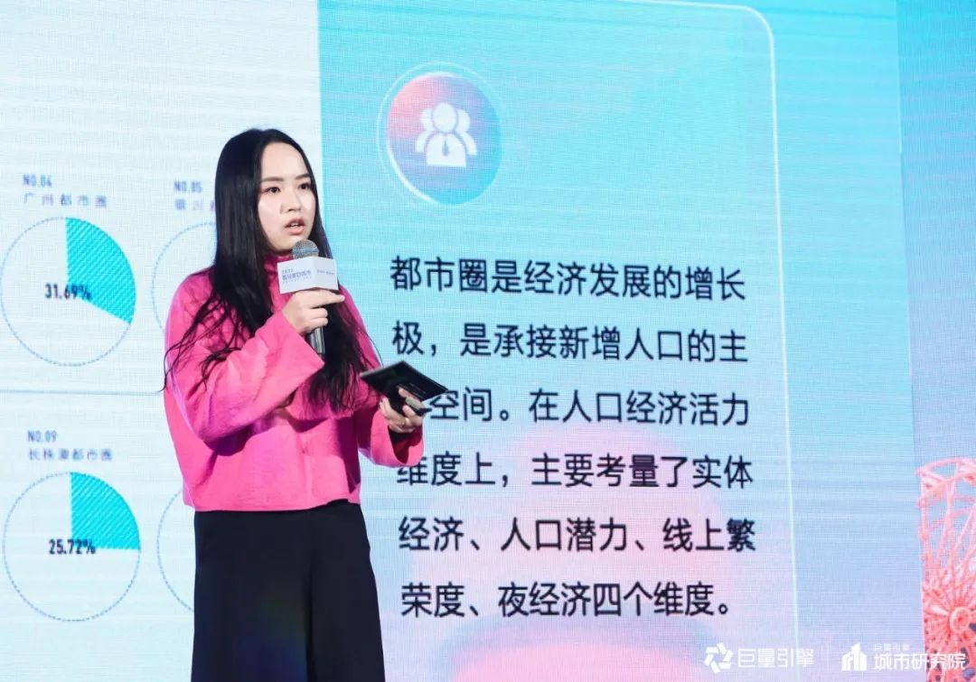 第一财经·新一线城市研究所主编沈从乐在峰会现场发布了《2022中国都市圈发展力白皮书》。沈从乐介绍,该报告在科学整合脱敏后的抖音用户行为数据以及新一线城市研究所长期积累的多项城市指标数据的基础上,建立了一套完备的都市圈发展力评价指标体系。研究围绕核心城市中心度、人口经济活力、产业集群创新、区域协同联系、商业消费潜力五大一级维度、19个二级维度以及22个三级维度——总共46个指标,综合评估都市圈发展力。